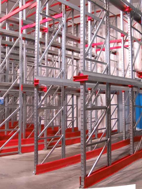 - Systèmes de stockage à accumulation et dynamique au maroc: dans le cas de marchandise homogène le système à accumulation DRIVE- IN et le système dynamique (first in - first out) et (last in -first out) permettent d'exploiter aussi l'espace que normalement dans les rayonnages traditionnels est réservé aux couloires pour la mouvementation